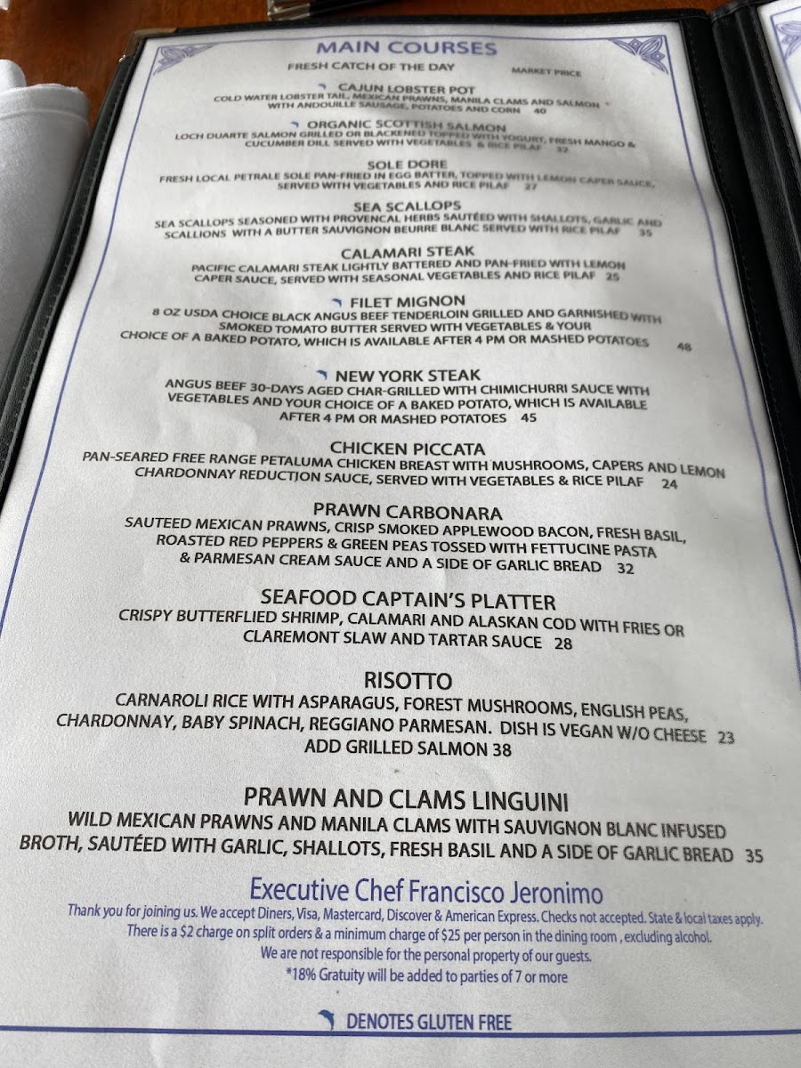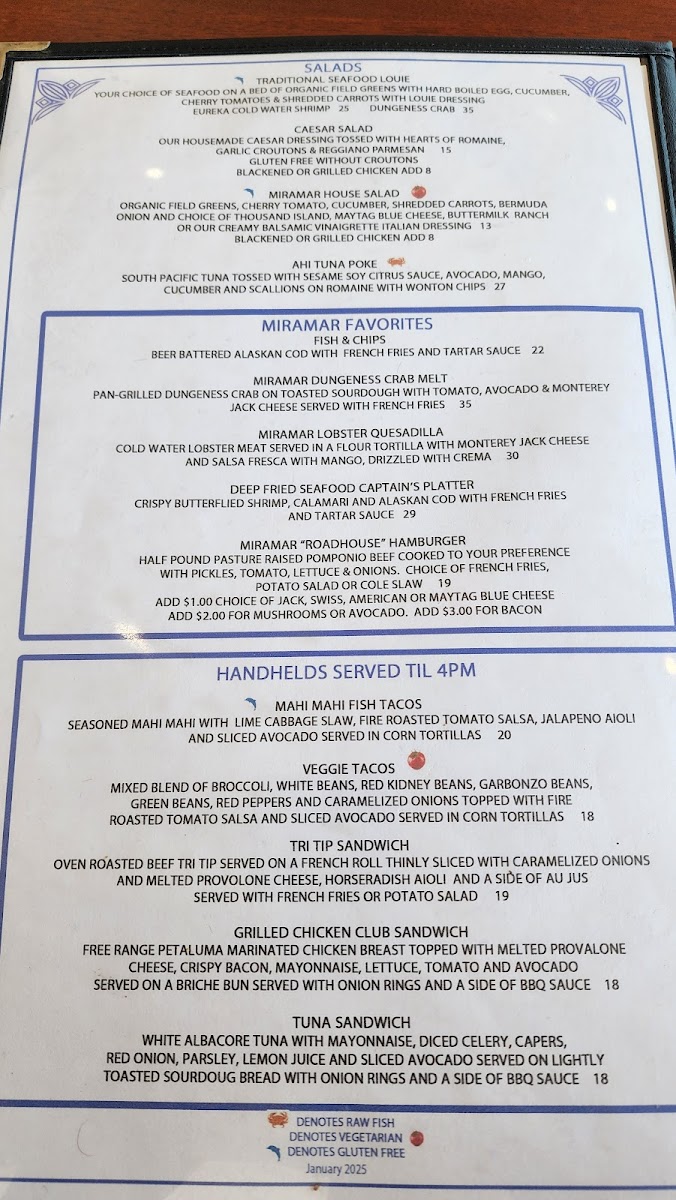 Love this Half moon bay restaurant!!! Has a local vibe and excellent food with a broad drink and wine menu. Price is commiserate with the quality of the food. Great sunset views of the ocean.